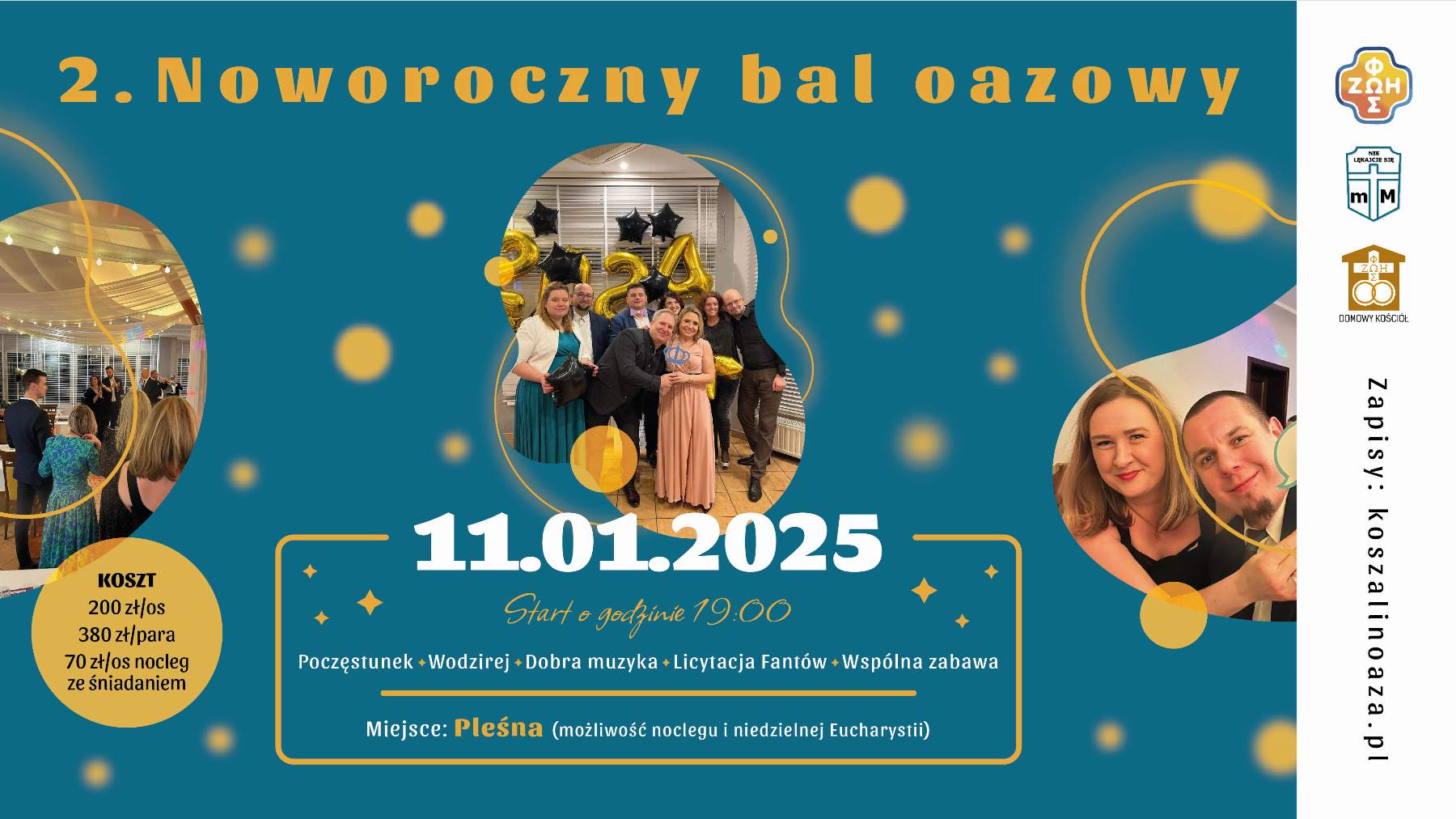 Przyjęcie zaczniemy o 19:00, ale wcześniej o 18:00 zapraszamy na Mszę Świętą.
