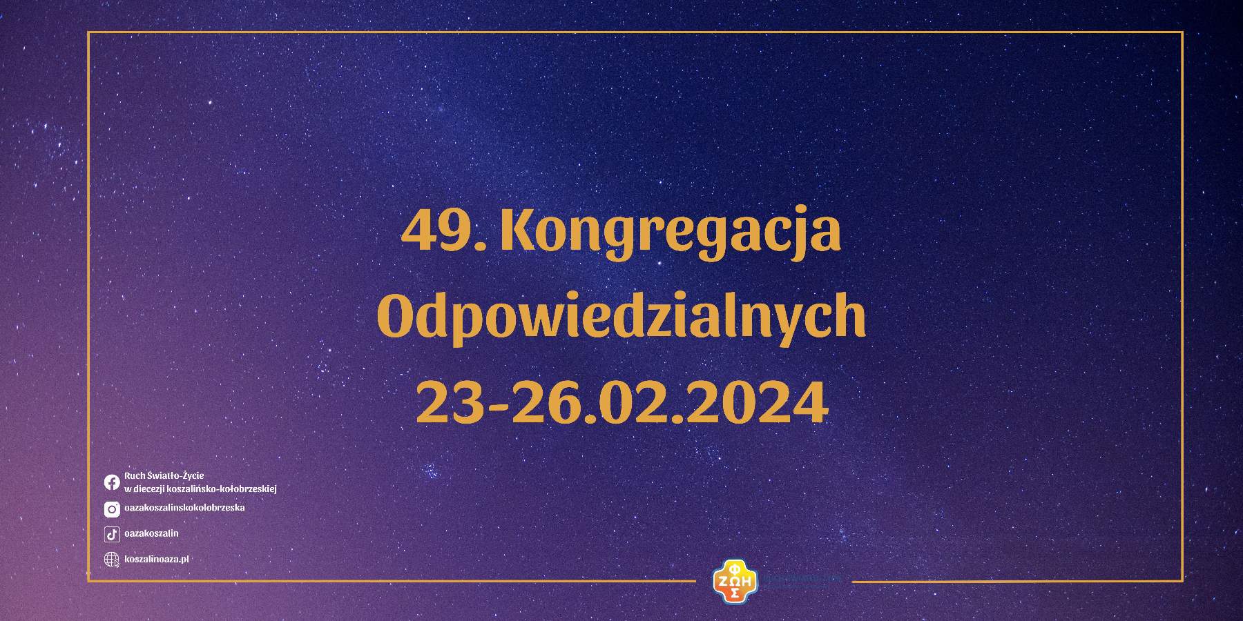 Serdecznie zapraszamy na czterdziestą dziewiątą Kongregację Odpowiedzialnych, która odbędzie się na Jasnej Górze w dniach 23-26 II br. Opłata za udział w Kongregacji, podobnie jak w zeszłym roku, wynosi 70 zł.