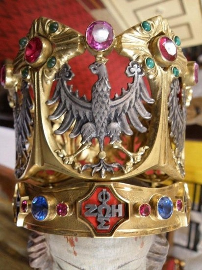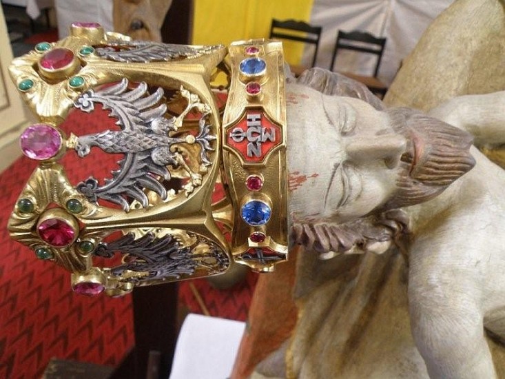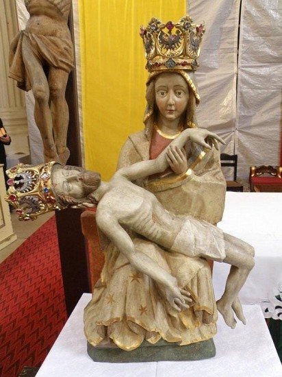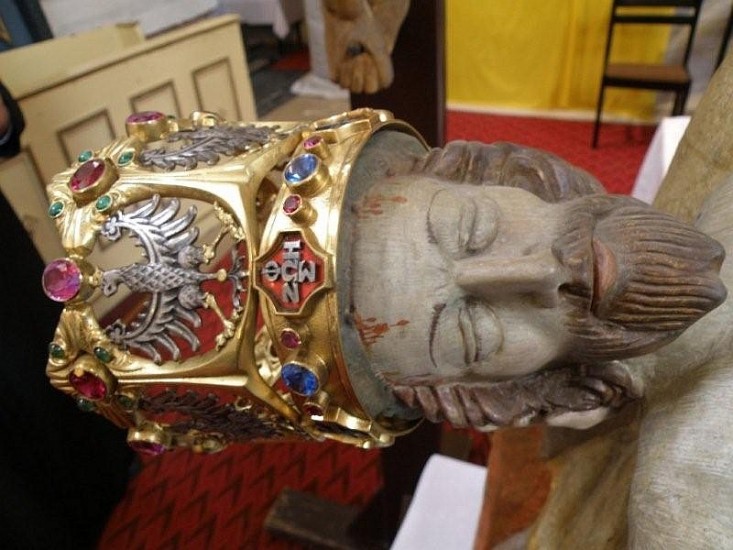Po ostatnim odkryciu w Skrzatuszu, to określenie porekolekcyjnego zmęczenia nabrało jednak zaskakującego znaczenia. Jak wiadomo trwa renowacja naszego diecezjalnego sanktuarium Matki Bożej Bolesnej. Cudowna Pieta Skrzatuska została wyjęta z głównego ołtarza i postawiona tak blisko wiernych, że można było się jej dokładnie przyjrzeć. To co zobaczyliśmy wprawiło nas w nie lada zdumienie. Otóż w koronie Jezusa umieszczone są dokoła Jego głowy różne chrystogramy. Nad samym czołem umieszczona jest wśród nich... foska!