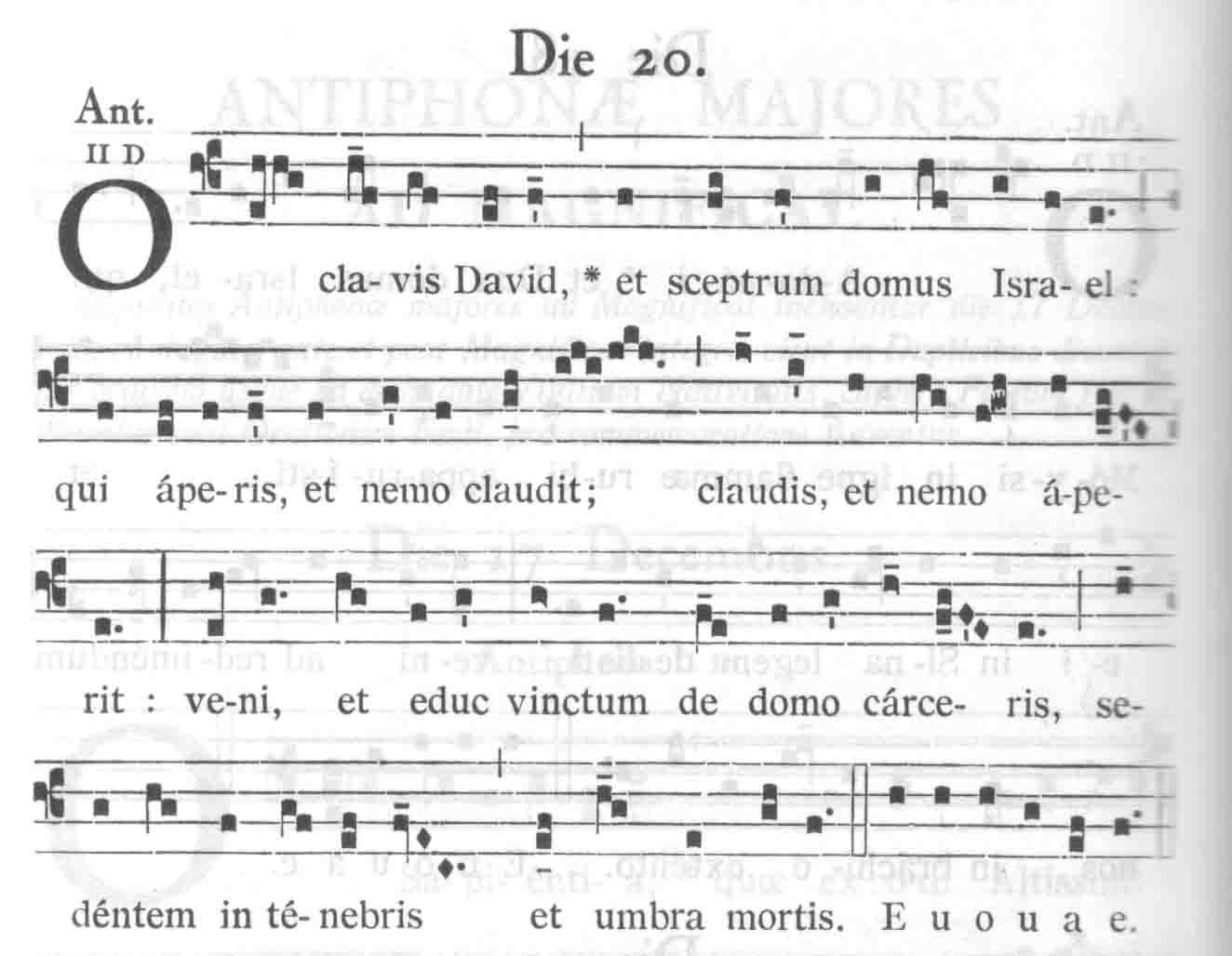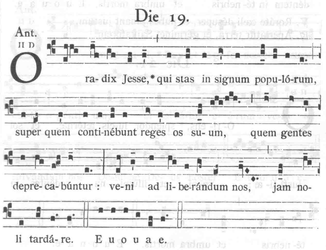 Zwyczaj śpiewu tych antyfon, zwanych Wielkimi lub Antyfonami „O”, miał być kluczem do pogłębienia chrześcijańskiego rozumienia psalmów. Antyfony rozpoczynali kantorzy, potem podejmował je chór (schola cantorum), a na końcu śpiewał je cały lud. Od Amalariusza, biskupa Metzu z IX w., który uporządkował te antyfony wiemy, że są one na pewno pochodzenia rzymskiego i były śpiewane w chorale gregoriańskim w dawnej Francji już w VII w. Ich melodia była tak piękna, że choć w większości nie rozumiano łaciny, to ludzie tłumnie schodzili się, by ich słuchać przeżywając tęsknotę za Bogiem wpisaną w samą melodię antyfon. Pełne ukształtowanie się tych antyfon, datować można zatem na wiek IX.