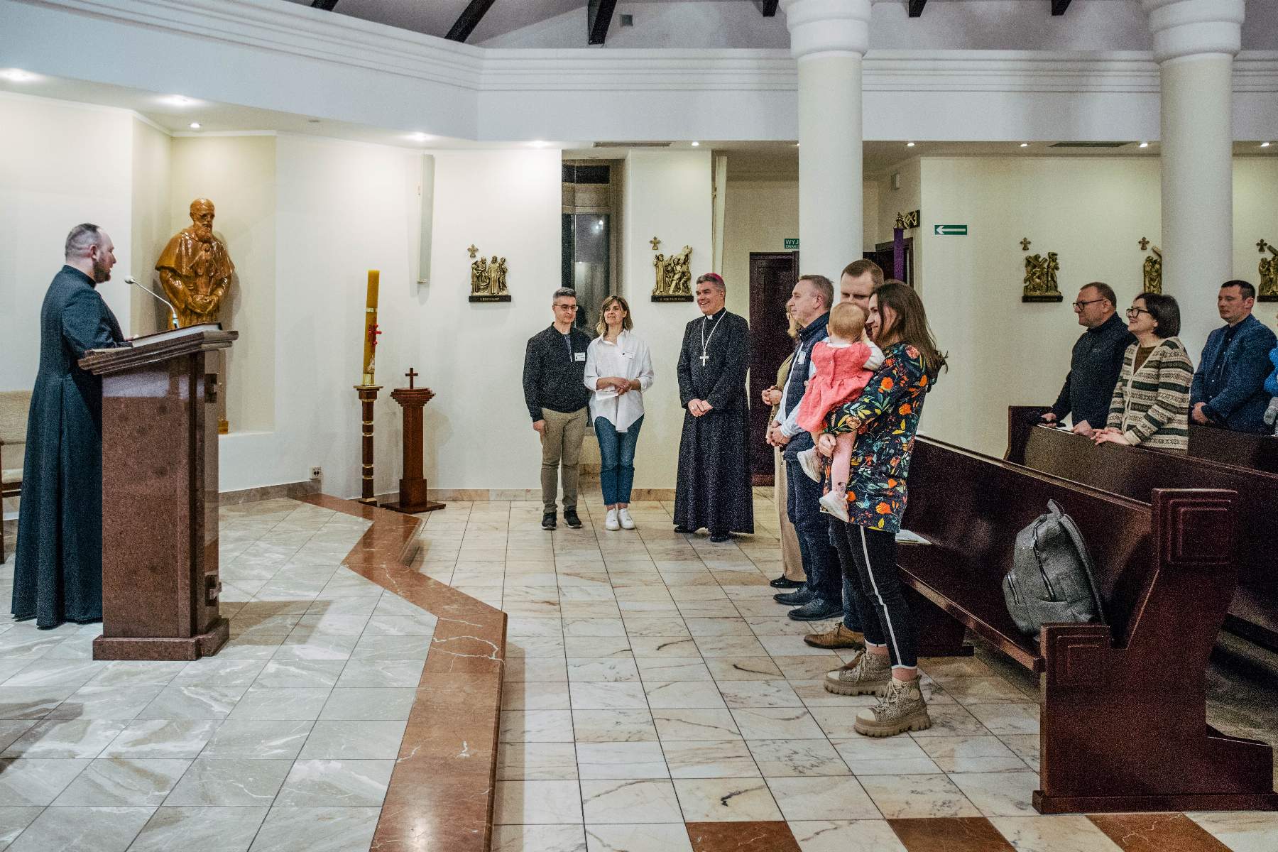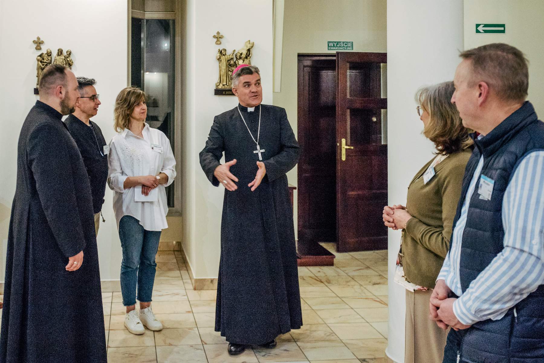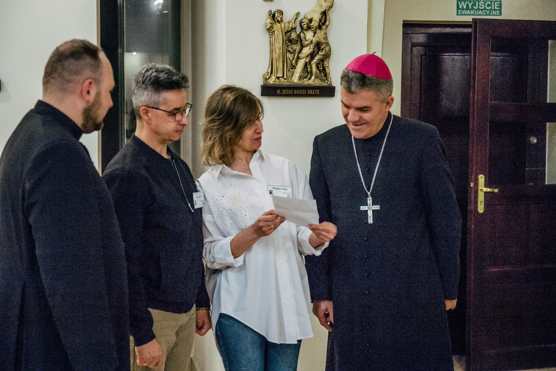 Swoją obecnością zaszczycił nas też ks. bp Zbigniew Zieliński. W krótkiej konferencji uświadomił zebranym, że „bliskość z Panem Bogiem jest kapitalną płaszczyzną, by przejść do bliskości z drugim człowiekiem”. Zachęcał nas, abyśmy w tym czasie zatrzymania, spróbowali zajrzeć w głąb swoich serc i tam odpowiedzieli sobie na pytania: kim jesteśmy, kim jest dla nas Bóg. „Ten czas jest dany po coś. Błagam was, żeby łaska Pana nie wylała się na darmo” – mówił ks. biskup i jednocześnie zapraszał by „nie ocierać się o siebie, ale ze sobą być”.
