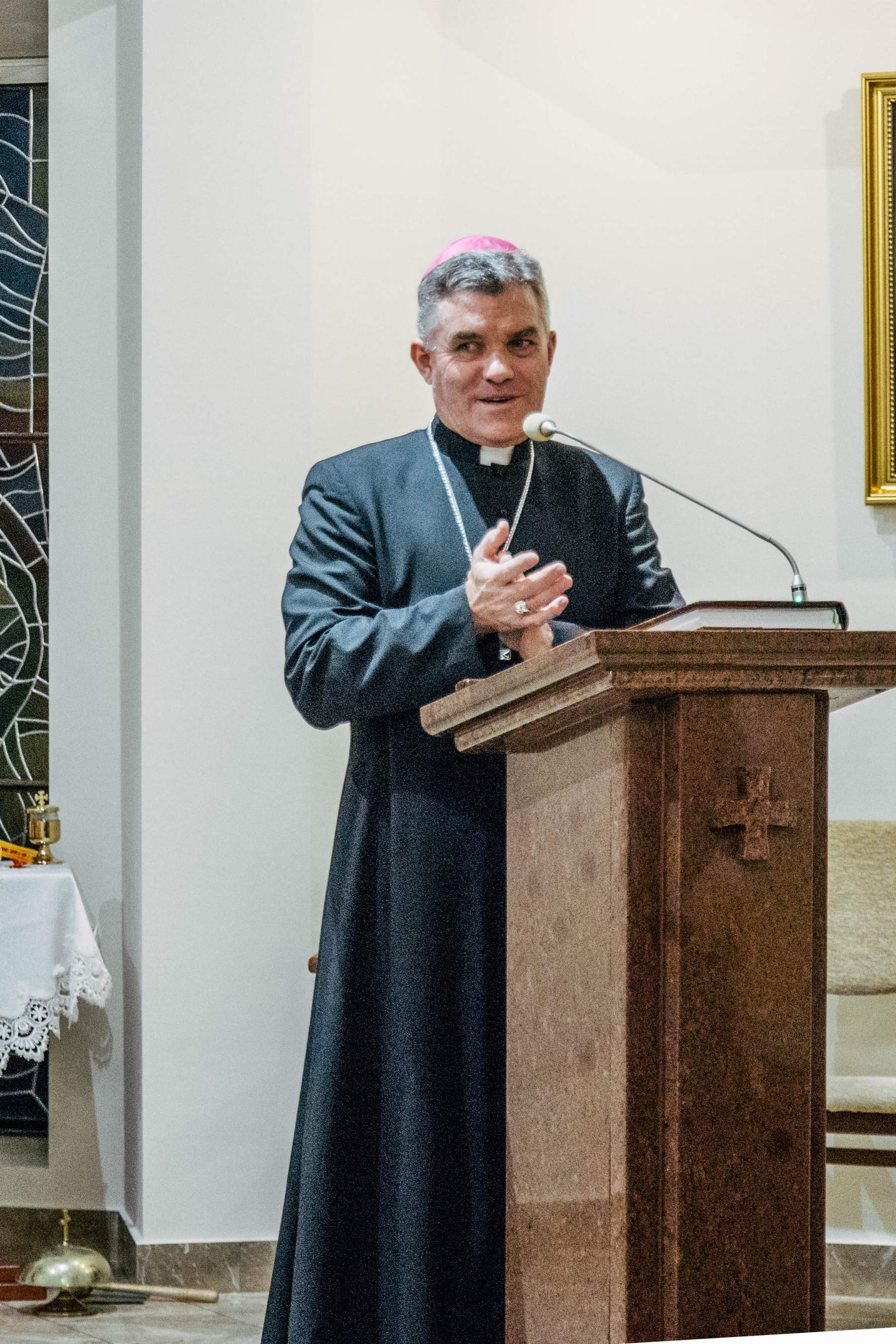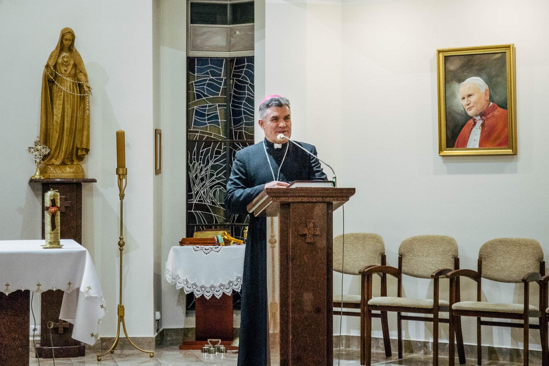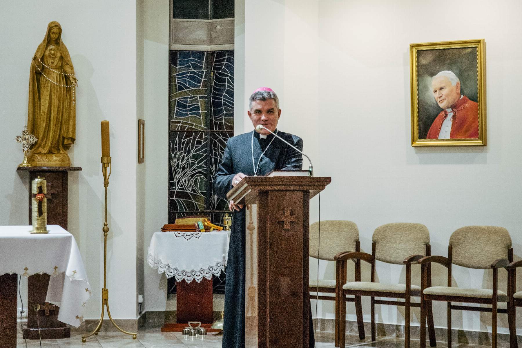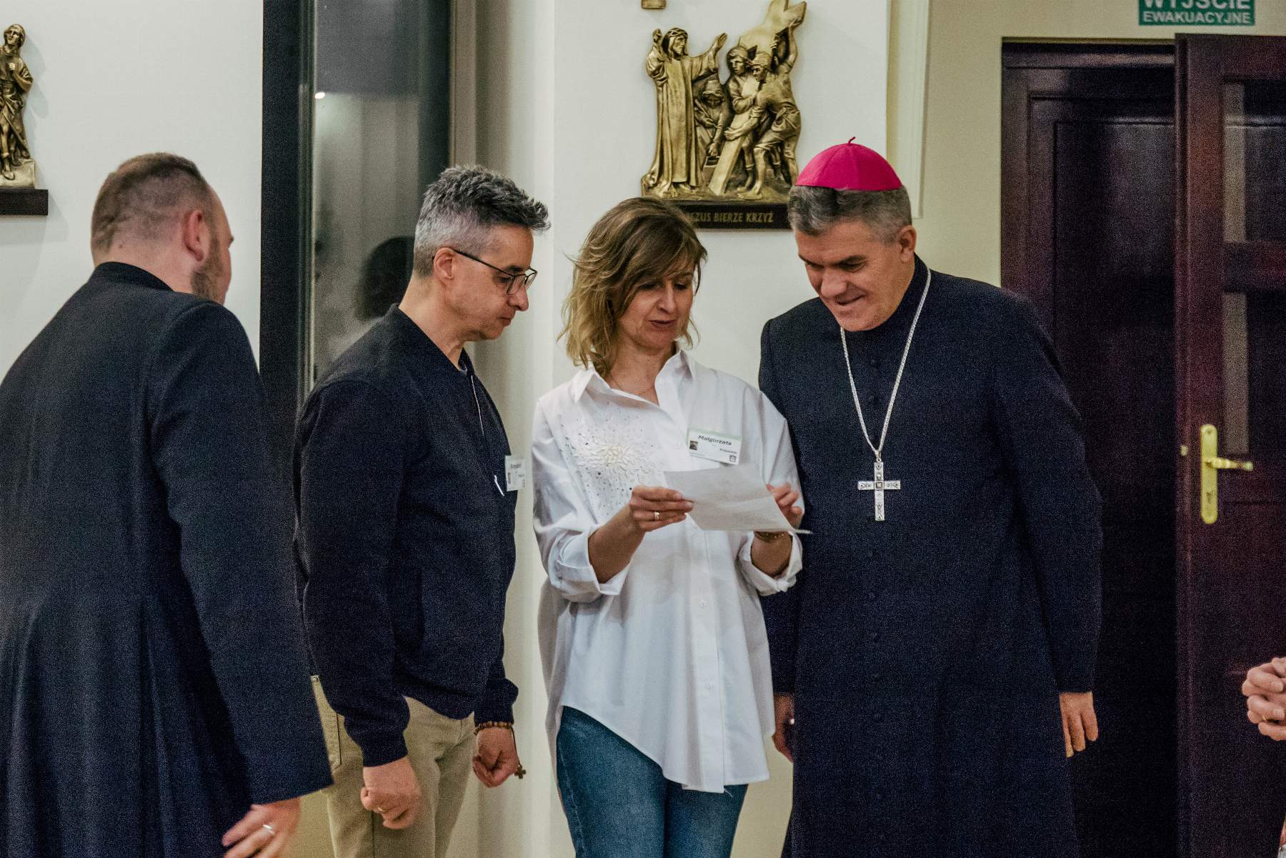 Swoją obecnością zaszczycił nas też ks. bp Zbigniew Zieliński. W krótkiej konferencji uświadomił zebranym, że „bliskość z Panem Bogiem jest kapitalną płaszczyzną, by przejść do bliskości z drugim człowiekiem”. Zachęcał nas, abyśmy w tym czasie zatrzymania, spróbowali zajrzeć w głąb swoich serc i tam odpowiedzieli sobie na pytania: kim jesteśmy, kim jest dla nas Bóg. „Ten czas jest dany po coś. Błagam was, żeby łaska Pana nie wylała się na darmo” – mówił ks. biskup i jednocześnie zapraszał by „nie ocierać się o siebie, ale ze sobą być”.
