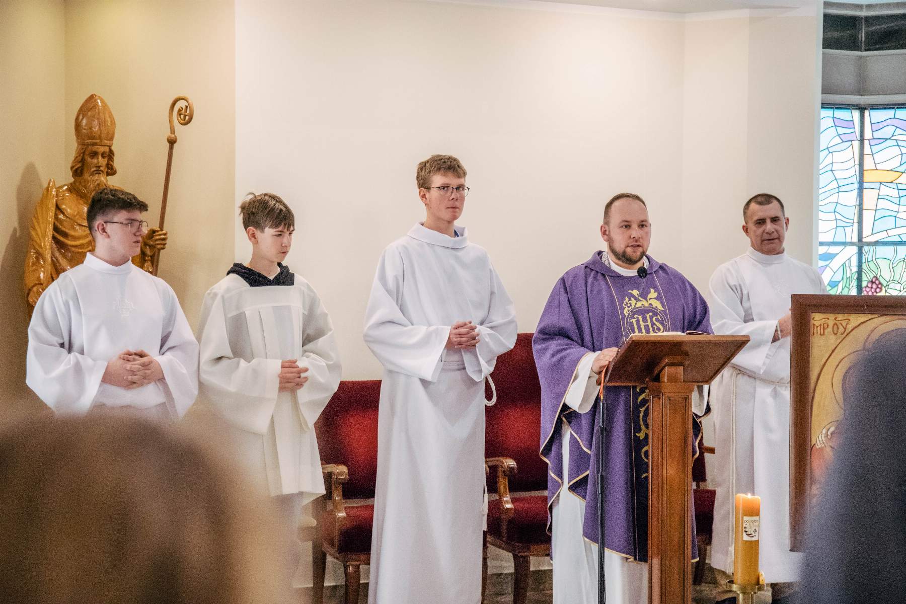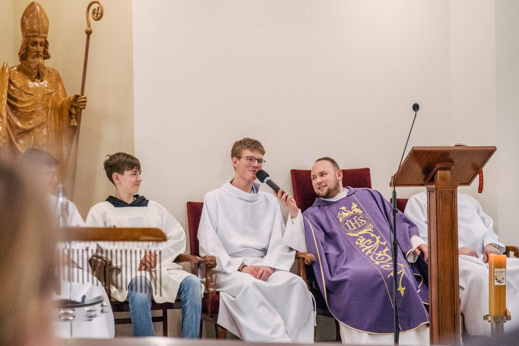 W ciągu tych trzech dni skupienia towarzyszył nam moderator rejonowy ks. Hubert Haber, który starał się być blisko na różnych przestrzeniach, poprzez posługę w konfesjonale, głoszenie Słowa Bożego, towarzyszenie uczestnikom w ich zmaganiach rekolekcyjnych, albo dostrzegania potrzeb tych najmniejszych.