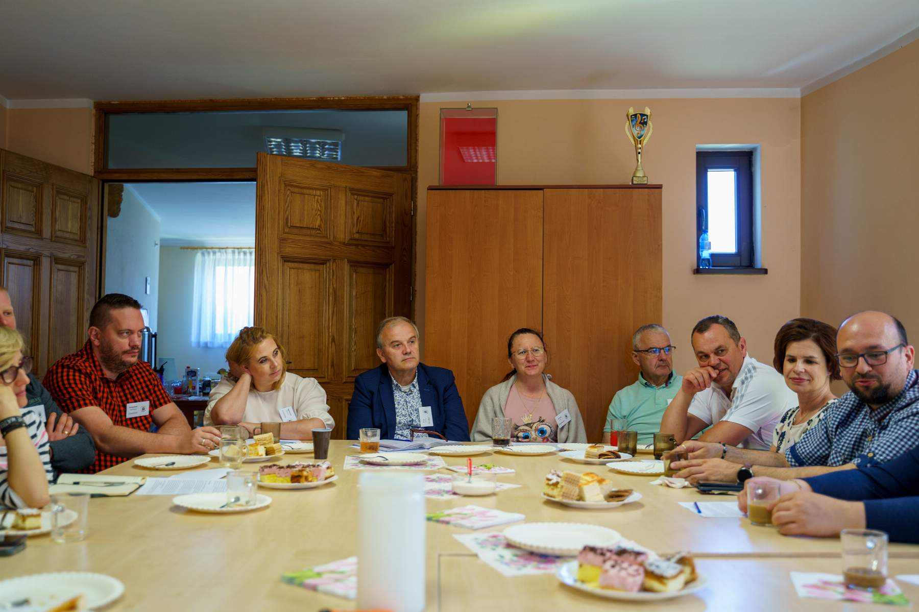 Jak to bywa w DK przy kawie, herbacie i pysznych ciasteczkach, poświęciliśmy chwilę na wspólne rozmowy i zapoznanie się. Była to chwila do podzielenia się pracami w rejonach i w diecezji. Podzieliliśmy się m.in. Rekolekcjami Ewangelizacyjnymi, które się odbyły w długi weekend majowy w Górce Klasztornej oraz Oazą Modlitwy, która miała miejsce w Wałczu.