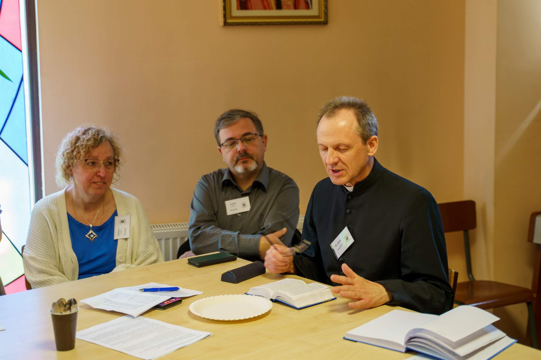 Po konferencji w małych grupach kontynuowaliśmy podjęty temat i rozmowy na temat: W jaki sposób mamy dawać świadectwo, aby doprowadzić uczestników rekolekcji do osobowego spotkania z Jezusem? Jak możemy stać się żywym świadectwem wiary – zwłaszcza posługując na rekolekcjach? W jakiej mierze moja modlitwa oraz wiara mają wymiar osobowego spotkania z Bogiem? W jaki sposób mogę wzmocnić ten aspekt mojego życia duchowego?, by następnie wspólnie sformułować wypracowane wcześniej wnioski i podzielić się wspólnymi przemyśleniami i sformułowaniami.