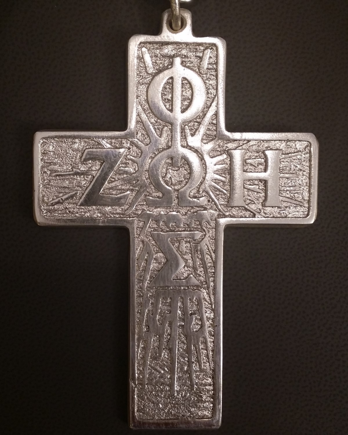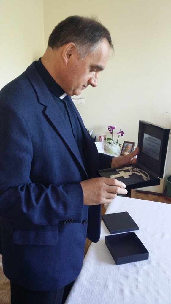 - krzyż pektoralny z wizerunkiem Chrystusa Sługi z przodu i greckim napisem FOS–DZOE z tyłu, który wykonał pan Józef spod Przemyśla,