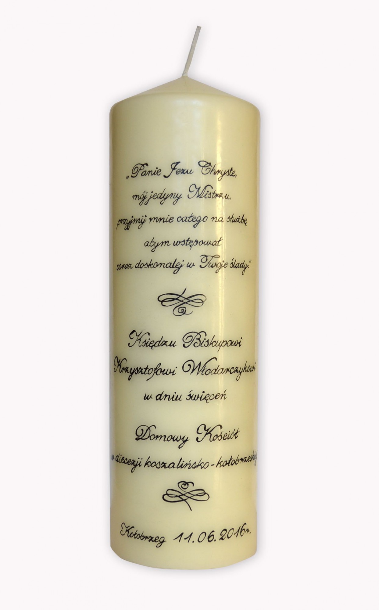 - świecę z wizerunkiem Chrystusa Sługi, którą wymalowała pani Danuta z kręgu Domowego Kościoła w Bornem Sulinowie.