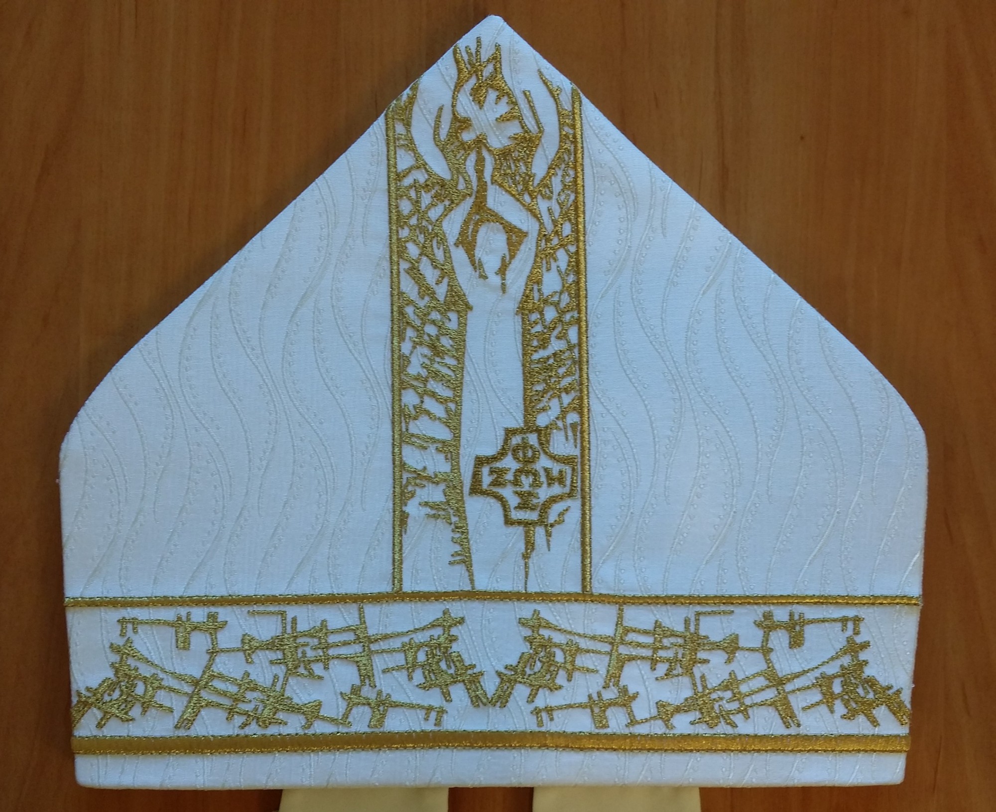 - mitrę z wizerunkiem Chrystusa Sługi, którą przygotowały Siostry Karmelitanki Bose ze Spręcowa koło Olsztyna,