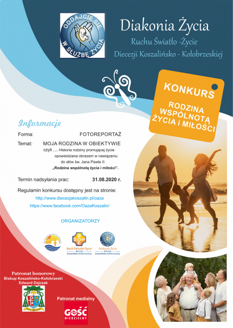 Diakonia Życia naszej diecezji zaprasza serdecznie do wzięcia udziału w konkursie na fotoreportaż. Przedstaw nam historię opowiedzianą obrazem z udziałem Twojej rodziny. Inspiracją do stworzenia konkursu były słowa św. Jana Pawła II „Rodzina wspólnotą życia i miłości”.
