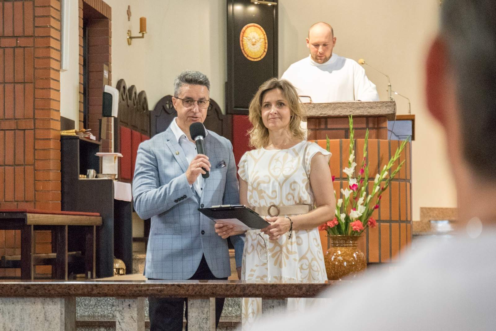 Po Mszy św. trzy małżeństwa podzieliły się swoimi świadectwami z rekolekcji wakacyjnych o tym jak Bóg działał w tym czasie w ich życiu.