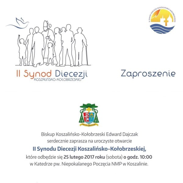 Biskup koszalińsko-kołobrzeski Edward Dajczak serdecznie zaprasza na uroczyste otwarcie II Synodu Diecezji Koszalińsko-Kołobrzeskiej, które odbędzie się w sobotę, 25 lutego 2017 roku o godz. 10:00 w katedrze koszalińskiej.